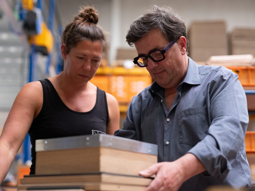 Valérie: We zijn tot in de details gegaan: vloeren uit gerecycleerd hout, tafels gemaakt van oude jeans, glazen uit restmateriaal van onze eigen productie. Zelfs het meubilair vertelt wie we zijn. KRAS architecten begrepen dat perfect. Hun ontwerp combineert duurzaamheid met openheid en gebruikscomfort.